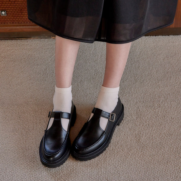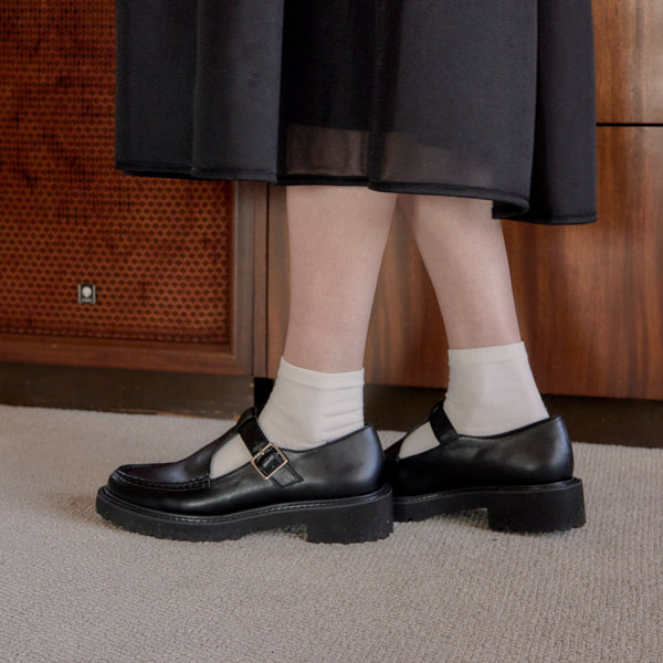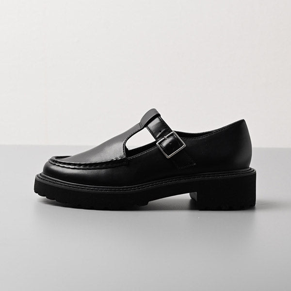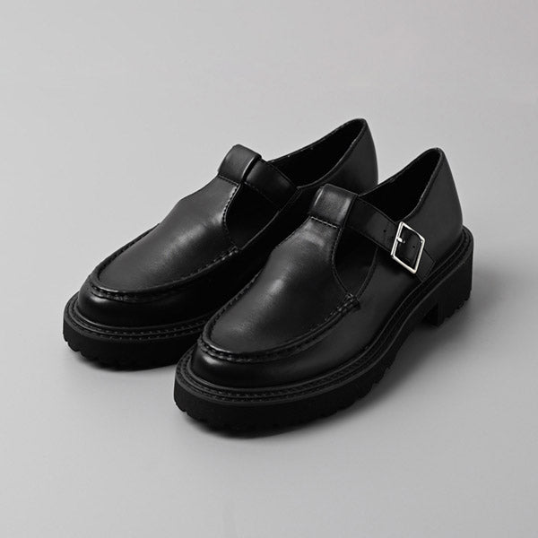 クラシックで上品な佇まいの、トレンドとして注目度大のTストラップシューズ。足の甲の肌見せとボリュームソールで、足長効果とスタイルアップも実現。しっかりホールドするTストラップ、ベルトはゴム仕様で、スリッポンのように履くことも可能。カジュアルな組み合わせにも、女性らしいスイートなコーデに合わせても楽しめる一足です。