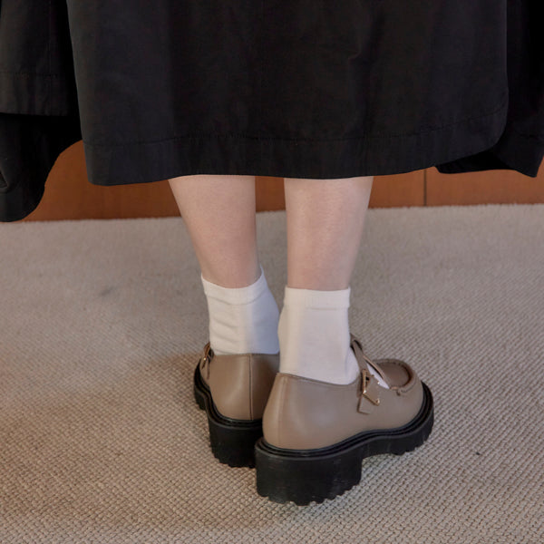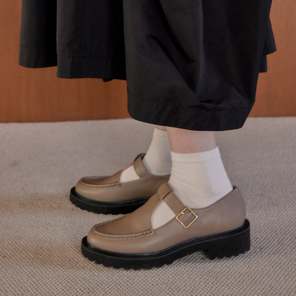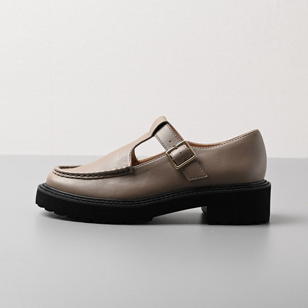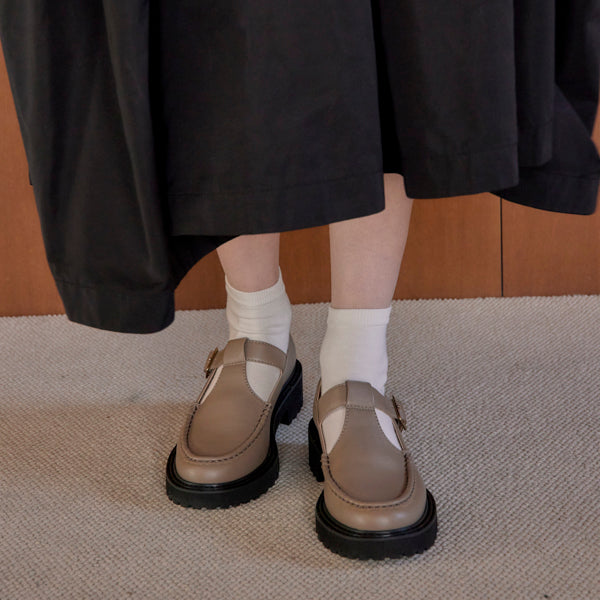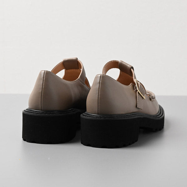 クラシックで上品な佇まいの、トレンドとして注目度大のTストラップシューズ。足の甲の肌見せとボリュームソールで、足長効果とスタイルアップも実現。しっかりホールドするTストラップ、ベルトはゴム仕様で、スリッポンのように履くことも可能。カジュアルな組み合わせにも、女性らしいスイートなコーデに合わせても楽しめる一足です。