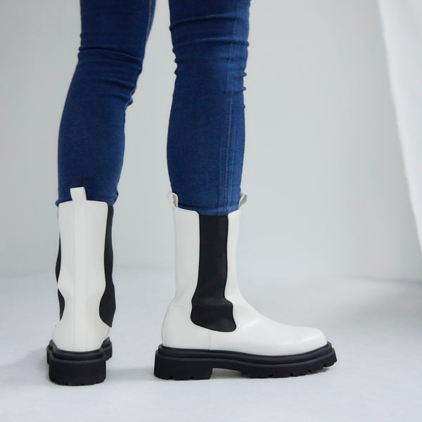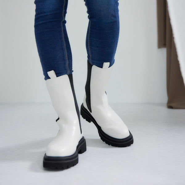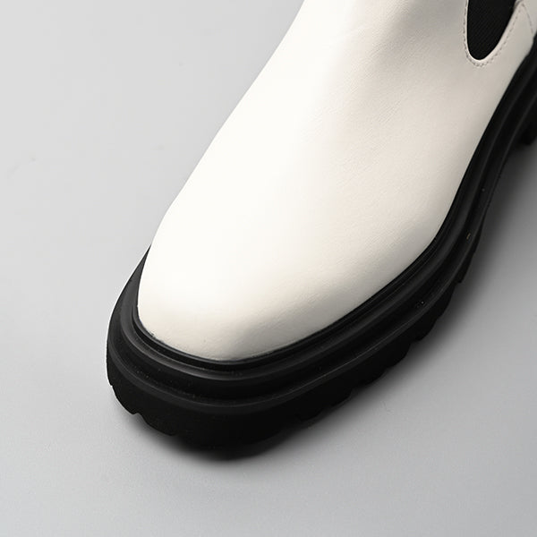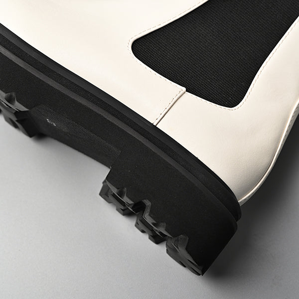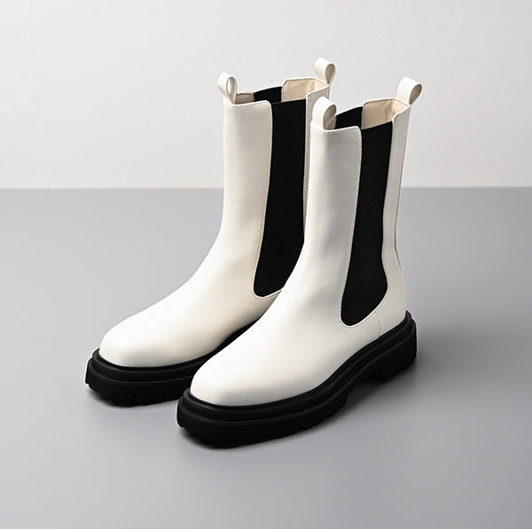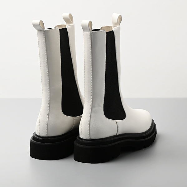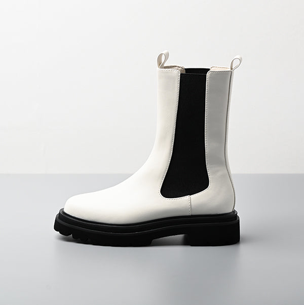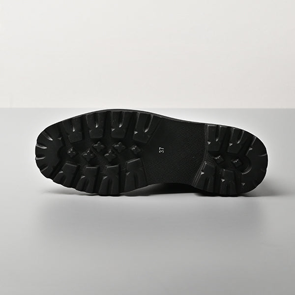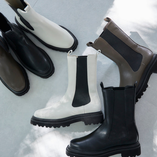 長く愛せる、オーセンティックなデザインのサイドゴアブーツ。程よくタイトなシルエットと絶妙なミドル丈、そしてサイドのゴムを裾広がりにして、すっきり綺麗なシルエットを表現しました。ソールは程よくボリュームをもたせ、今季らしいバランスに。アッパーは撥水効果もある傷や汚れに強いPU素材、靴底はグリップ力の高いゴツゴツとしたタンクソールを採用し、雨の日にもご活躍いただける一足に仕上げています。プルストラップを前後にあしらった事でデザインのポイントになりつつ、着脱のしやすさにも配慮しました。シーンやスタイリングを問わないベーシックなデザインが大人の日常にぴったり。どんなスタイルにも馴染み、トレンドに左右されず末永くご愛用いただけるラシックドットを代表する逸品です。