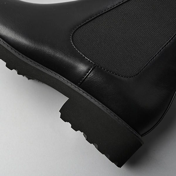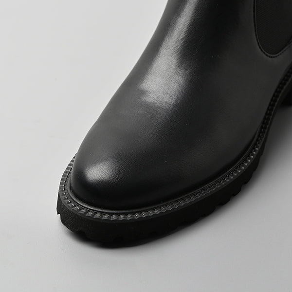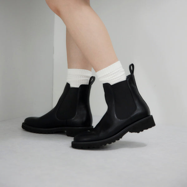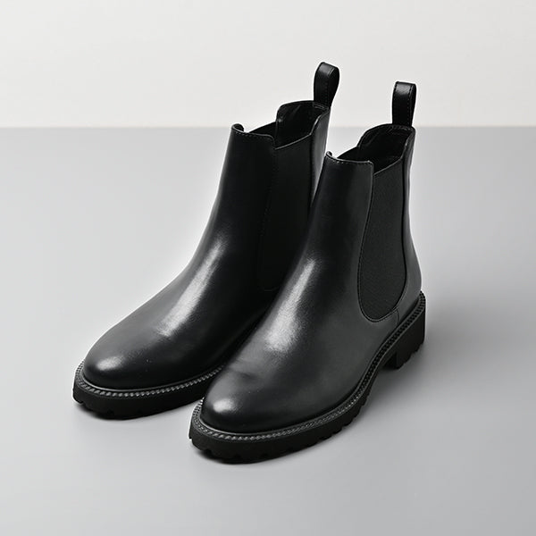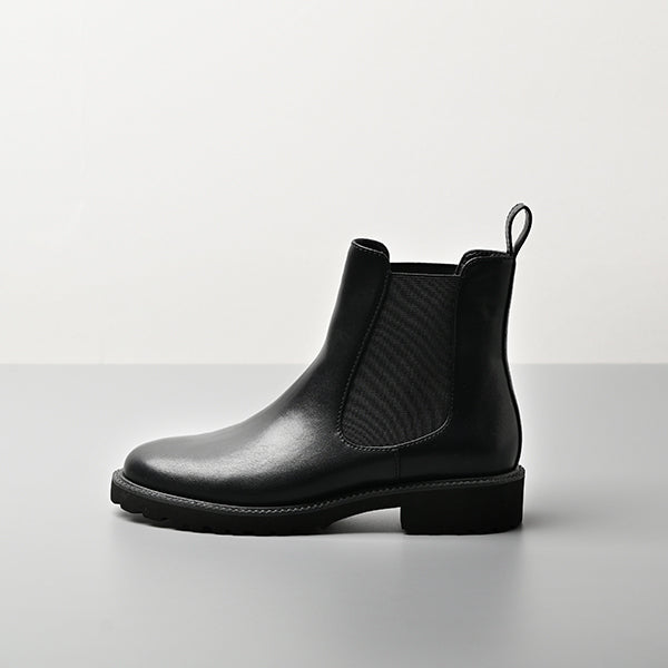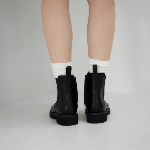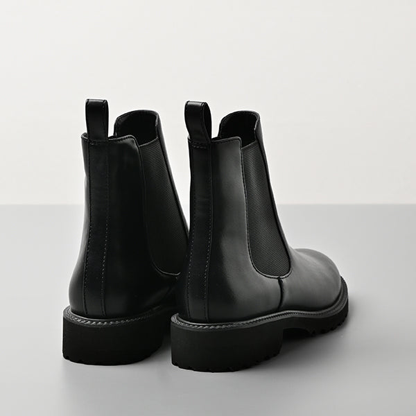 アンクル丈が今の気分。毎日愛用したくなる定番サイドゴアブーツ。すっきりとした美しいスムース合皮レザーを活かした、飾りのない究極にミニマルで履き回し力の高い一品です。程よくボリュームのあるソールに短め丈の好バランスが、旬なコーディネートを楽しめるポイント。完全防水ではありませんが軽い雨の日でも安心して履いていただけるのも魅力です。パンツを合わせたアクティブなデイリーカジュアルにはもちろんの事、ふんわりとしたスカートやロングワンピースなどの引き締め役にもぴったり。オールシーズン・タイムレスにご愛用いただける一足です。