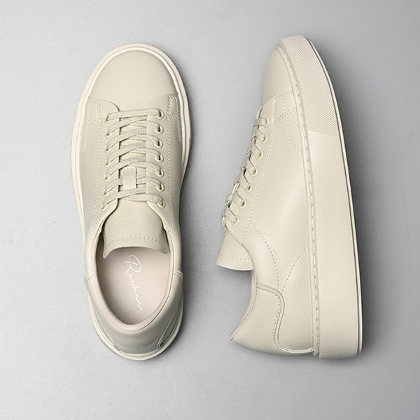 アッパー・ハトメ・シューレースを同色でまとめ、タン部分には“Rashic.”のロゴを型押し加工で施したシックなモデル。