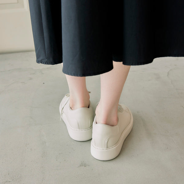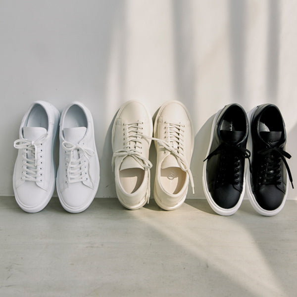 ソールのホワイトが効いたモードなブラック、清涼感たっぷりに仕上げたホワイト、柔らかく優しい雰囲気のベージュのベーシックなカラー展開です。