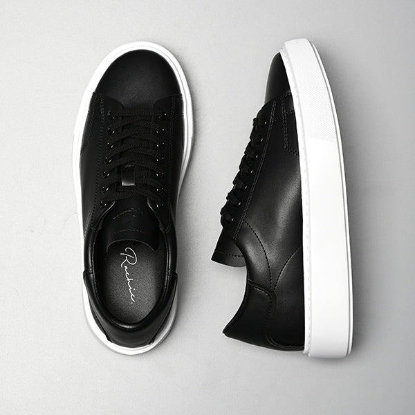 アッパー・ハトメ・シューレースを同色でまとめ、タン部分には“Rashic.”のロゴを型押し加工で施したシックなモデル。