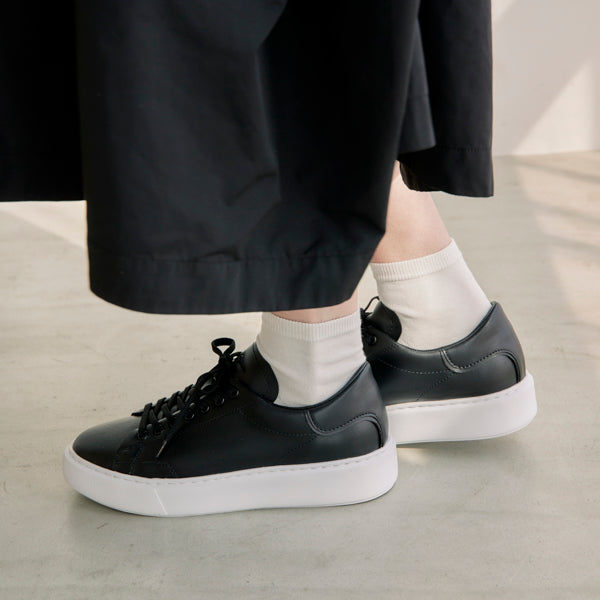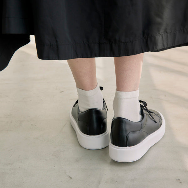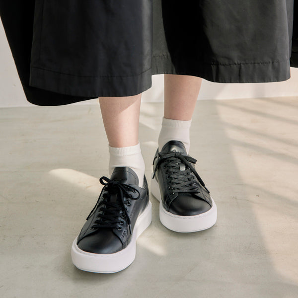 アッパーは雨や汚れにも強いヴィーガンレザーを採用した、カジュアルさを抑えた大人っぽさのあるデザインです。