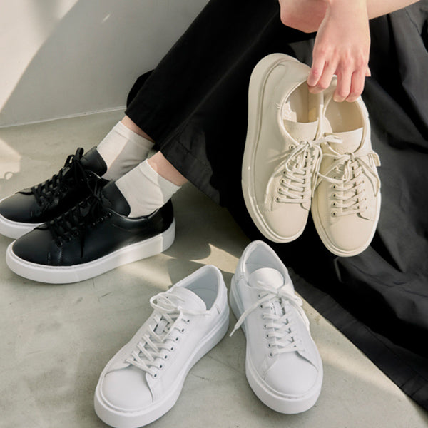 ソールのホワイトが効いたモードなブラック、清涼感たっぷりに仕上げたホワイト、柔らかく優しい雰囲気のベージュのベーシックなカラー展開です。
