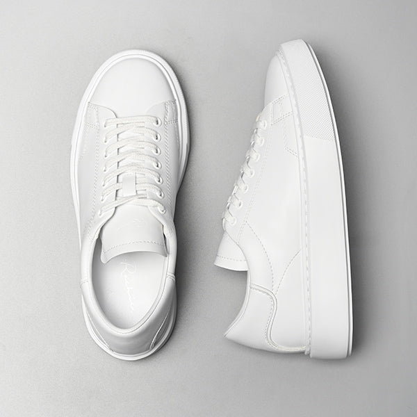 アッパー・ハトメ・シューレースを同色でまとめ、タン部分には“Rashic.”のロゴを型押し加工で施したシックなモデル。