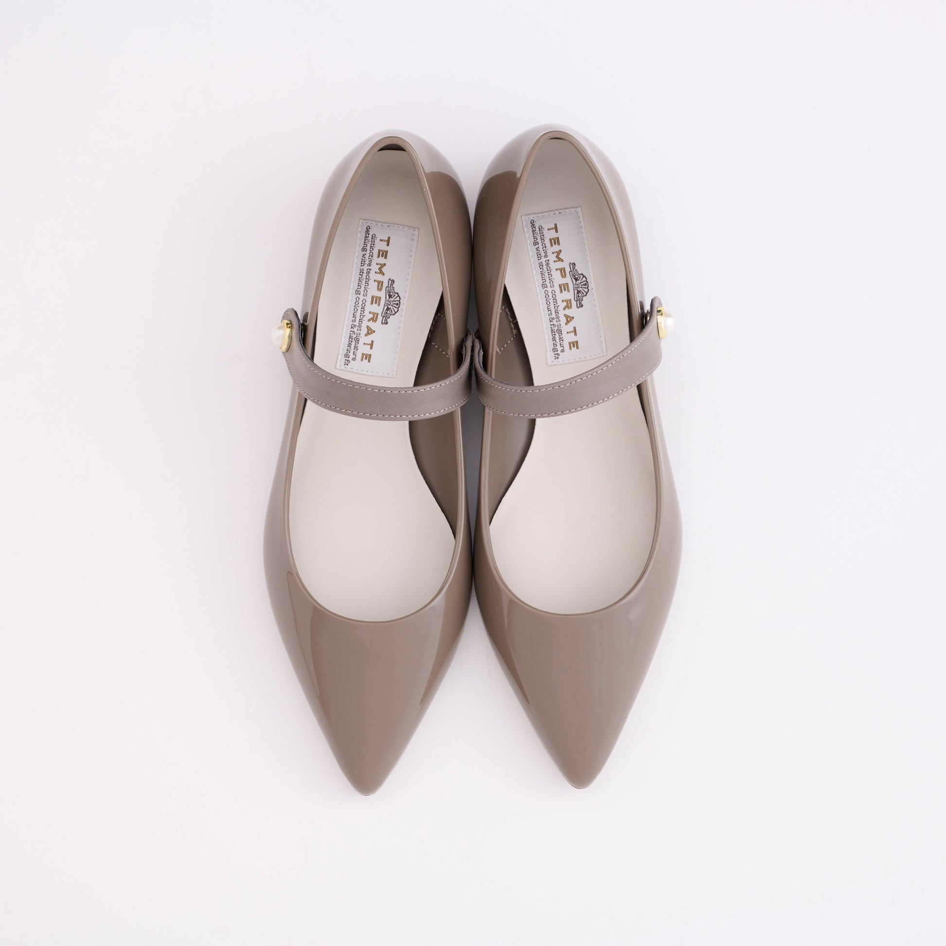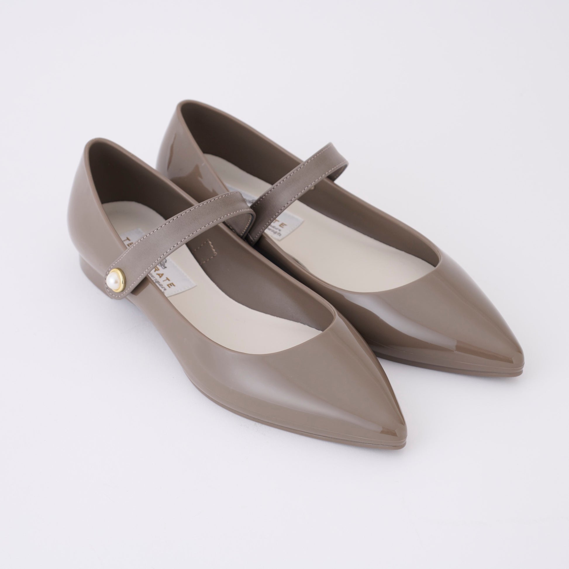【TEMPERATE】CARRIE_ストラップ付エナメルフラットシューズ(晴雨兼用)