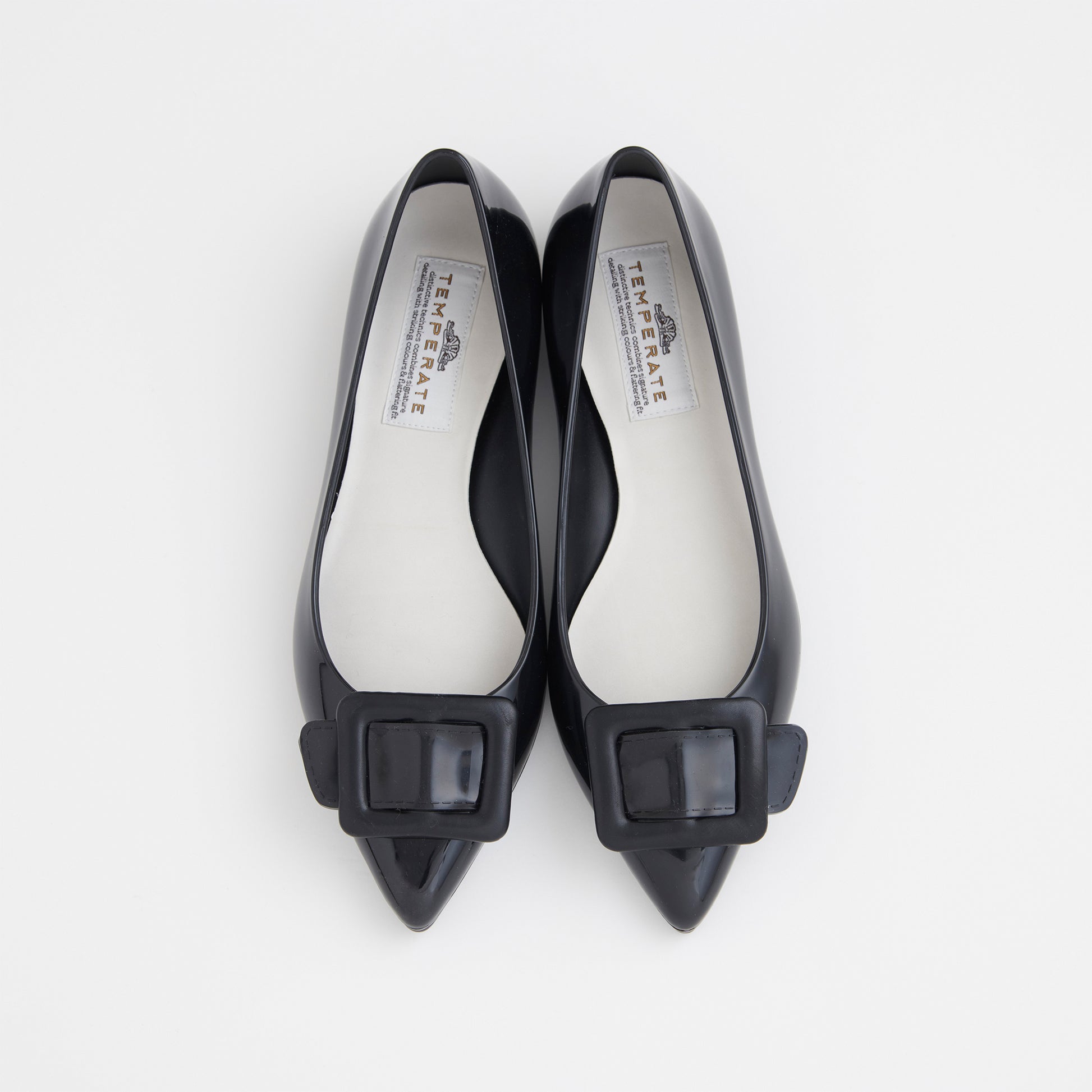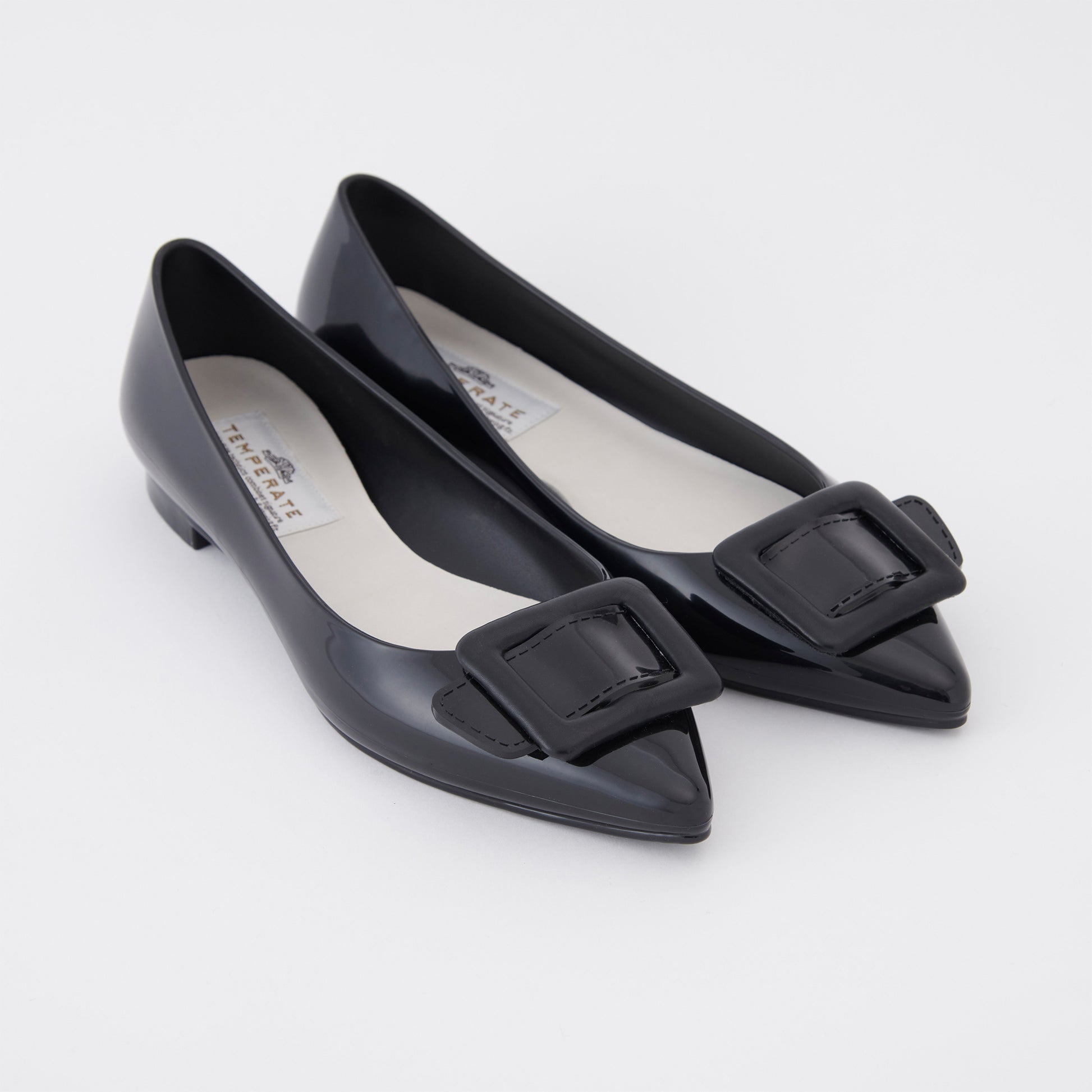 【TEMPERATE】NINA_スクエアモチーフ付エナメルフラットシューズ(晴雨兼用)