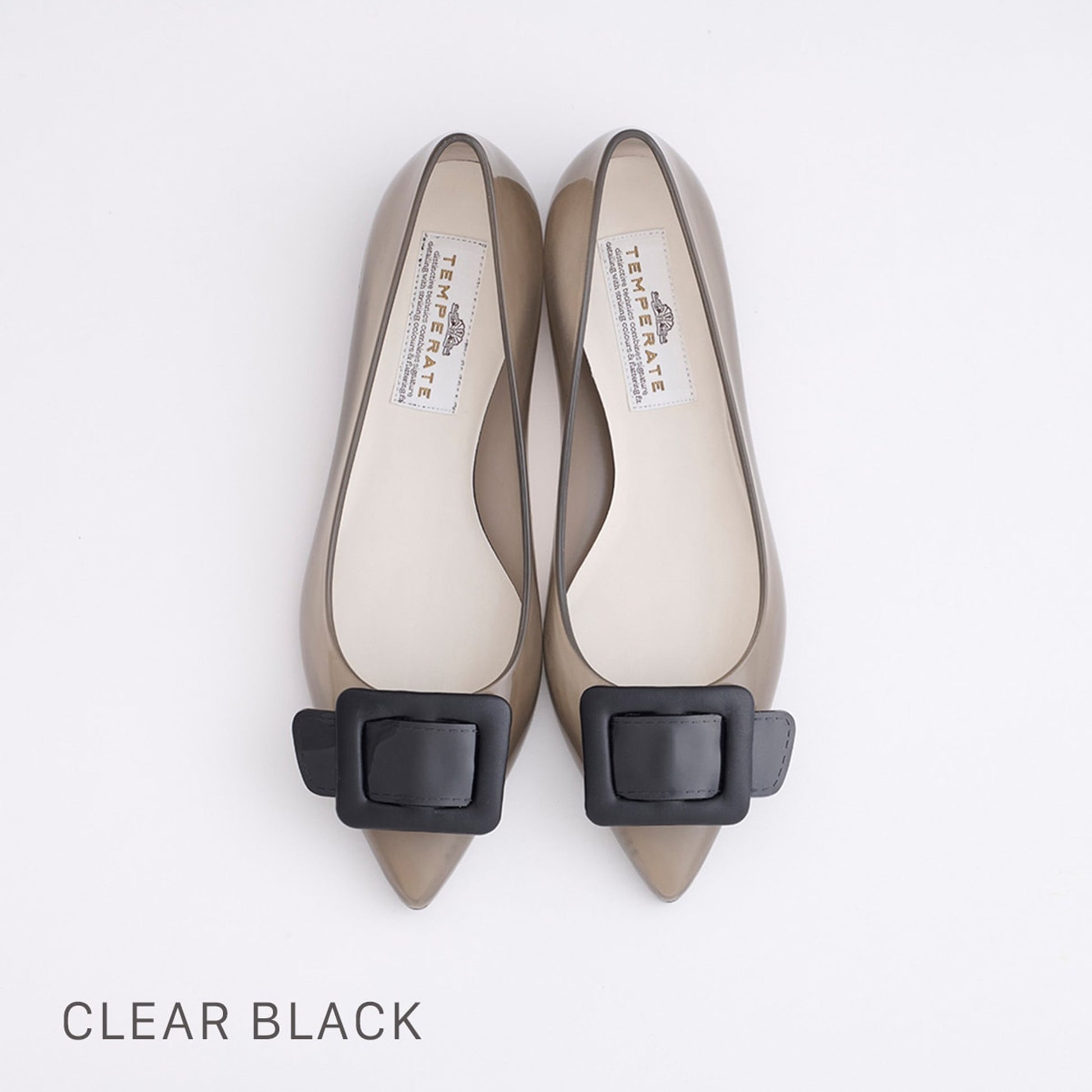 【TEMPERATE】NINA_スクエアモチーフ付エナメルフラットシューズ(晴雨兼用)
